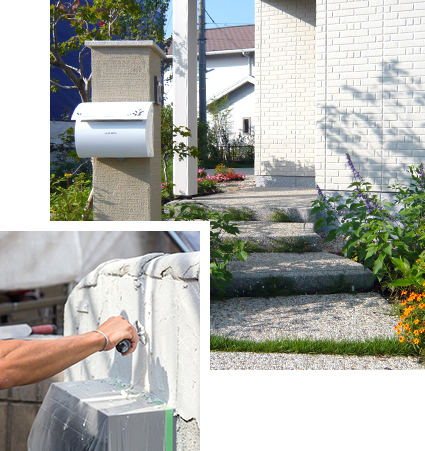 当社では外構工事だけでなく、外回りに関する工事に幅広く対応しております。『造園』『植樹』『舗装』など、住まいの外回りをトータルで施工いたします。そのため外観の統一感を大切にしつつも、お客様のもつ理想のイメージを限りなく実現する施工のご提案が可能です。